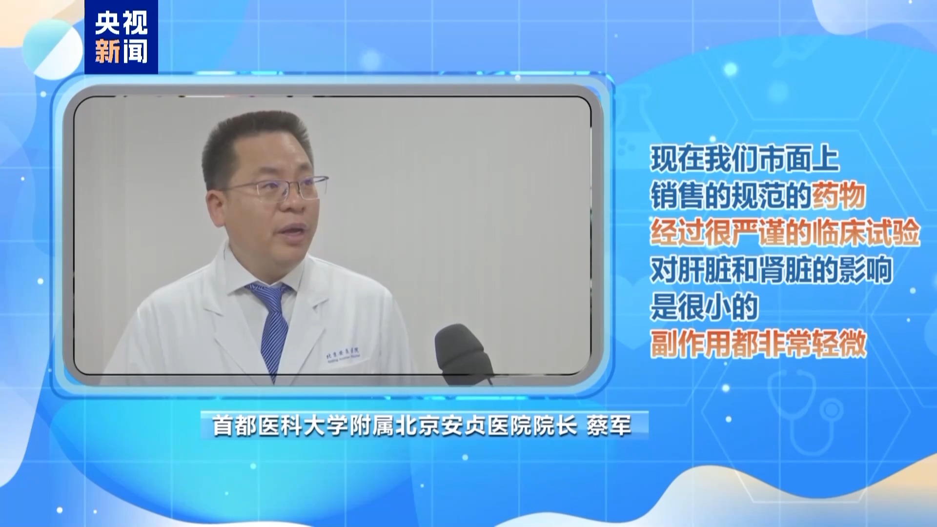 蔡军:现在市面上销售的规范药物经过很严谨的临床试验,它对肝脏和肾脏的影响是很小的,而且现在药副作用非常轻微。很多人都会通过民间的一些土方法,比如说喝芹菜汁或者喝三七粉治高血压,但是就目前我们看到的数据,似乎作用并不大。