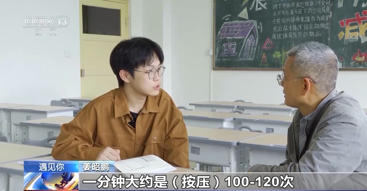 姜昭鹏:这就是得多谢我们学校,校医院会定期组织一批学生去练习这些急救知识。