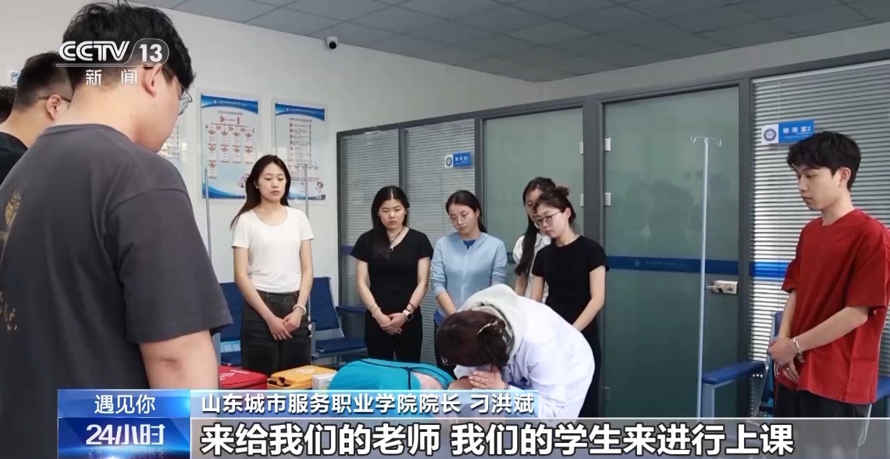 山东城市服务职业学院院长 刁洪斌:我们自己研发的一门校本课程,这个课程叫生命健康教育。我们邀请了三甲医院的急诊科专家团队来给我们的老师、学生上课。包括敬畏生命、疾病预防、心理健康教育、疾病救护、紧急避险等模块。这个课程我们是把它作为必修课,面向所有的学生,都要上、都要学、都要考。