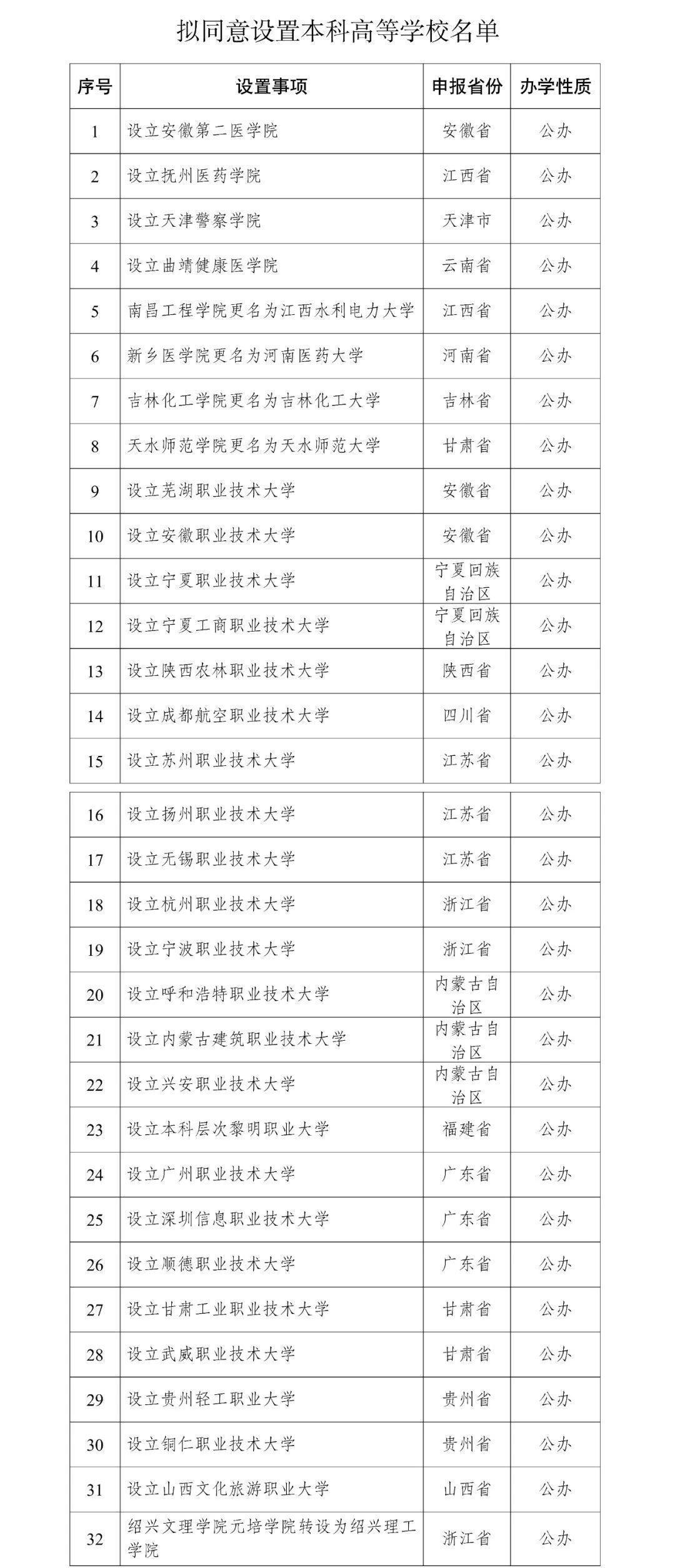 央视新闻讯 记者从教育部官网获悉, 教育部拟同意设置安徽第二医学院、天津警察学院、芜湖职业技术大学等32所学校,现予公示。