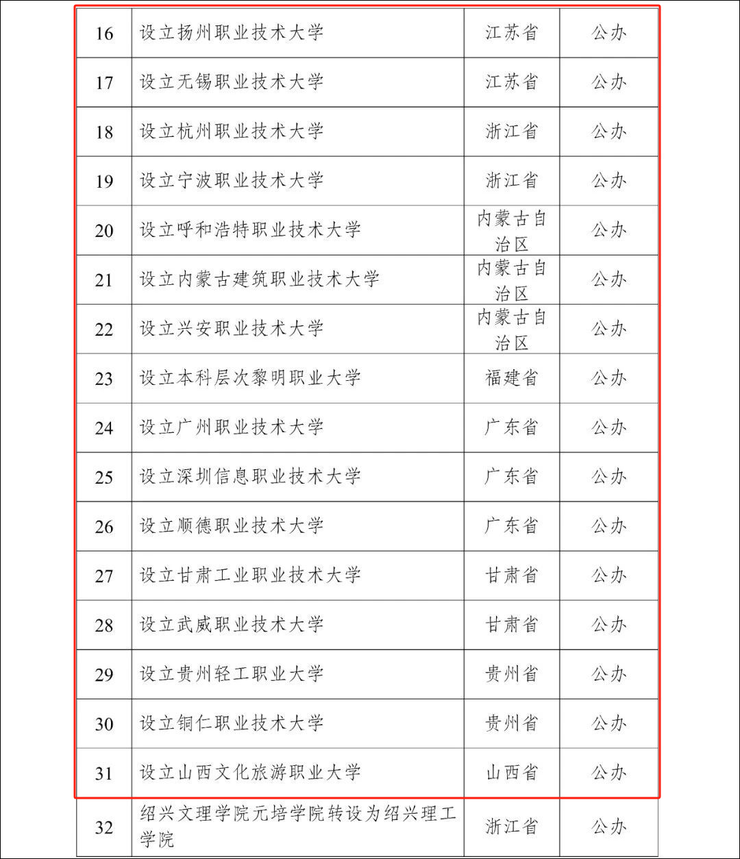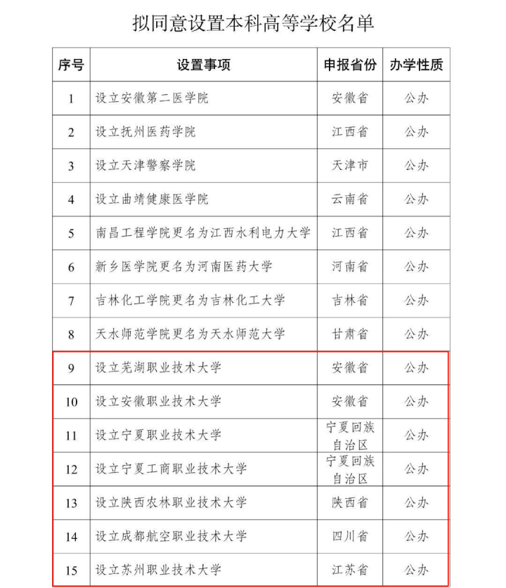 央视新闻讯 今天(5月22日),记者从教育部官网获悉,教育部拟同意设置安徽第二医学院、天津警察学院、芜湖职业技术大学等32所学校。小编在名单中发现,在新设的32所大学中,23所为职业本科。名单如下↓