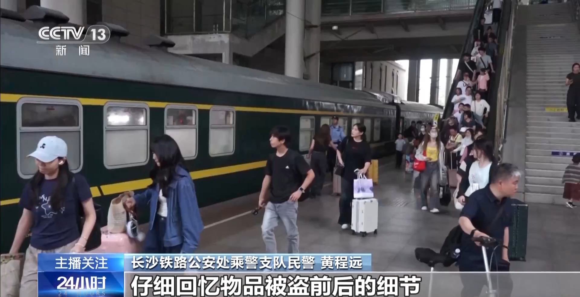 长沙铁路公安处乘警支队民警 张益:比如有的旅客在候车时,将贵重物品放在身边,却因为玩手机或打瞌睡而没有留意,不法分子就可能顺手将贵重物品拿走。特别是现在大家对手机充电的需求较大,一旦手机放置在无人看管的位置充电,就很容易丢失被盗。还有在列车上,一些旅客把行李放在头顶行李架上,却长时间不关注,不法分子可能在列车停靠或车厢内人员走动时,趁机偷走行李中的贵重物品。