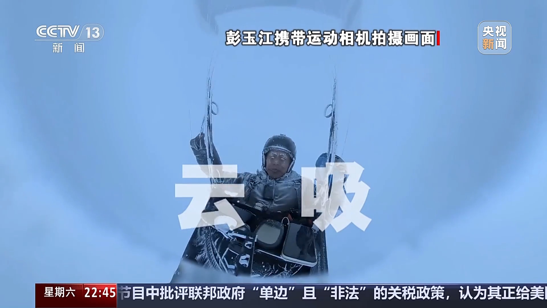 视频中的不是哪部电影的片段,而是发生在高空的真实一幕。操纵无动力滑翔伞的飞行员名叫彭玉江,正被迫在海拔7000米左右的云层中飞行。