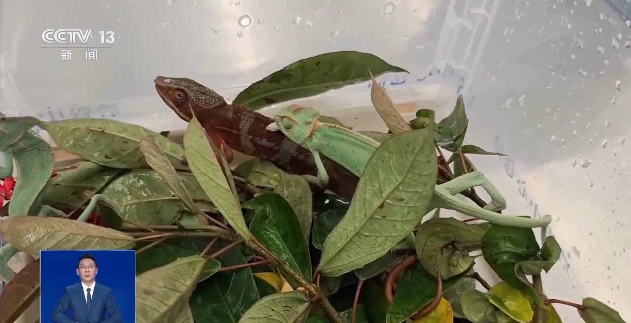 深圳海关所属皇岗海关关员刘芊华:这名旅客衣着臃肿、身体僵硬、神情比较紧张,我们就对他进行了拦截检查。结果在他的腰部两侧和后背处发现透明塑料袋,袋中装有10只濒危变色龙、4只外来物种伞蜥、1只卵胎蜥属物种。