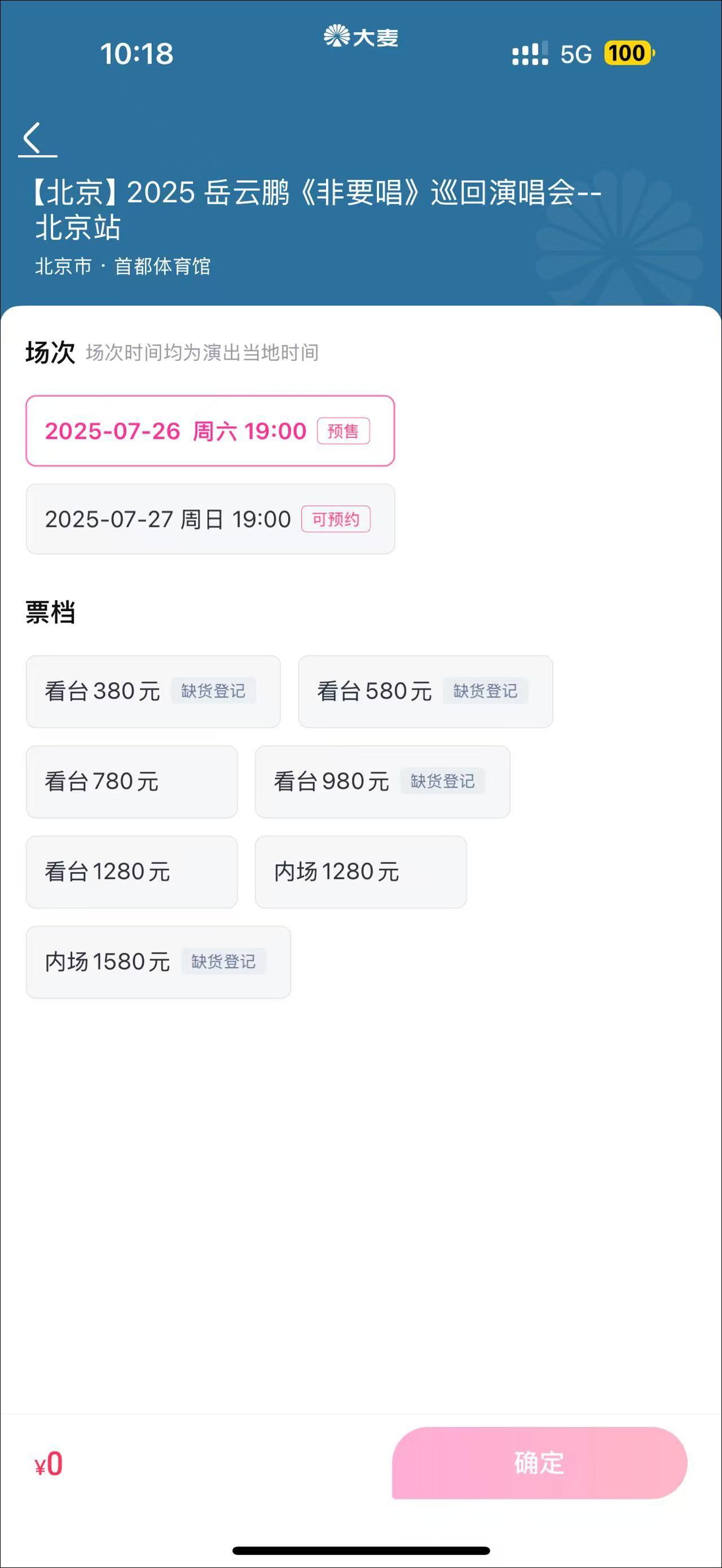 开票仅一分钟不到,最贵的1580元内场票已显示“缺货登记”。看台380元、580元、980元的票也一抢而空。