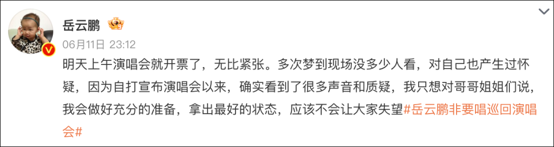 此前,岳云鹏曾在官宣演唱会时就回应过“没歌唱”的质疑。