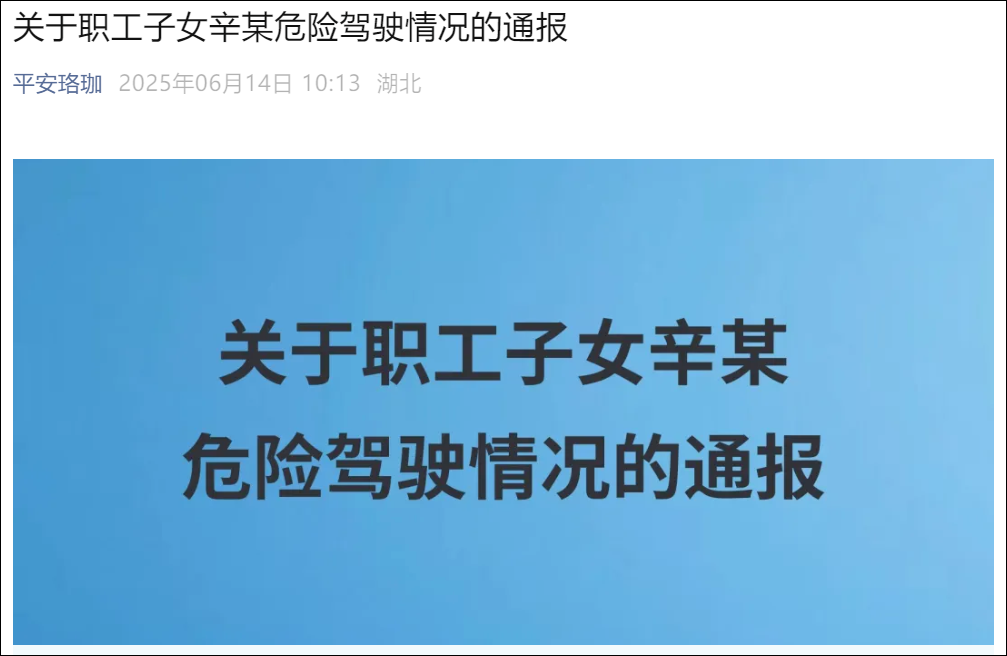 2025年5月18日20时39分,我校三名学生骑行共享电动自行车沿珞珈山路向自强大道方向行驶,因速度较慢,引起后方车牌尾号为X99的机动车驾驶员辛某不满。当双方行至万林路口时,辛某驾驶机动车强行逼停骑行学生。