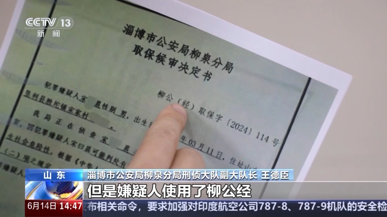 淄博市公安局柳泉分局刑侦大队副大队长 王德臣:这份法律手续看上去非常逼真,但是通过详细甄别我们发现有三处破绽,首先是这个法律手续的法律文书号,我们分局一般使用柳公刑作为这个法律文书号,但是嫌疑人使用了柳公经,这与我们正常情况不相符,第二个就是案件名称,我们一般以公司加上罪名对案件进行命名,但是这个法律文书使用了嫌疑人加罪名进行命名。