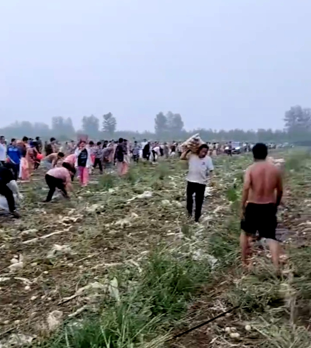 安徽宿州市埇桥区一种植户种植的土豆遭村民哄抢。网传视频截图