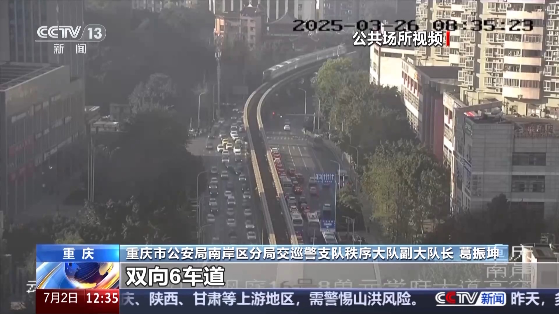 重庆市公安局南岸区分局交通巡逻警察支队副支队长 胡陶:我们发现在交通组织里面,交通标志标线还有很多可以优化提升的地方,比如说现在我们一个车道是3.3米到3.5米的一个车道,我们的标准也可以降到2.75米,通过瘦身车道的方式,可以增加2到3个车道。