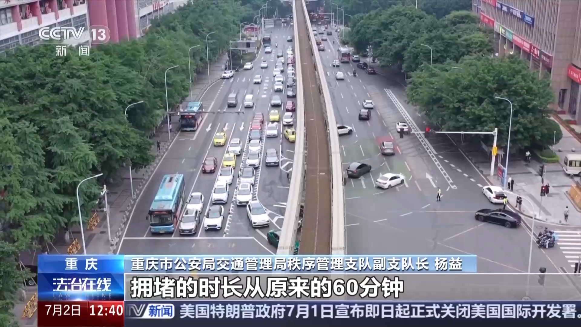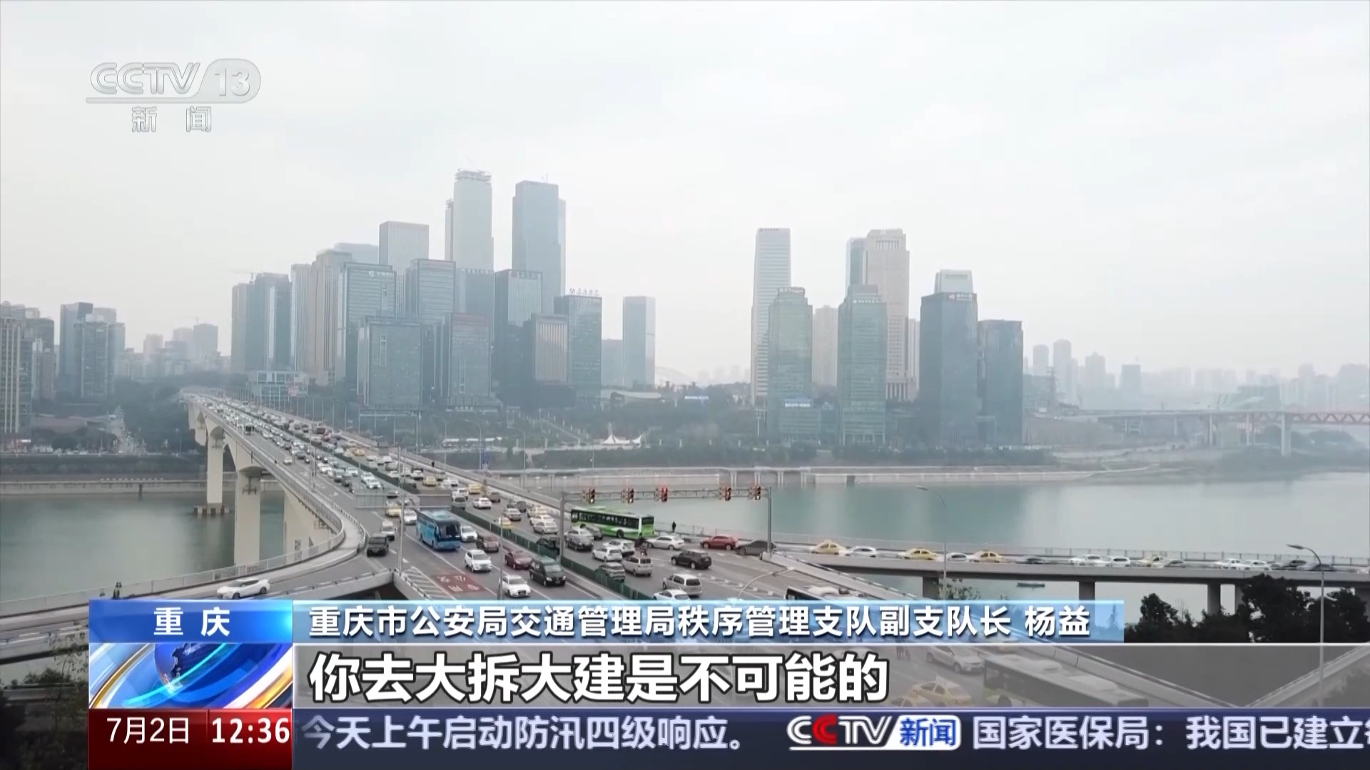 重庆市公安局交通管理局秩序管理支队副支队长 杨益:重庆,很多网友戏称为“8D魔幻城市”,很多路口都是畸形路口,甚至还有五岔路口。治理很困难,大拆大建是不可能的。