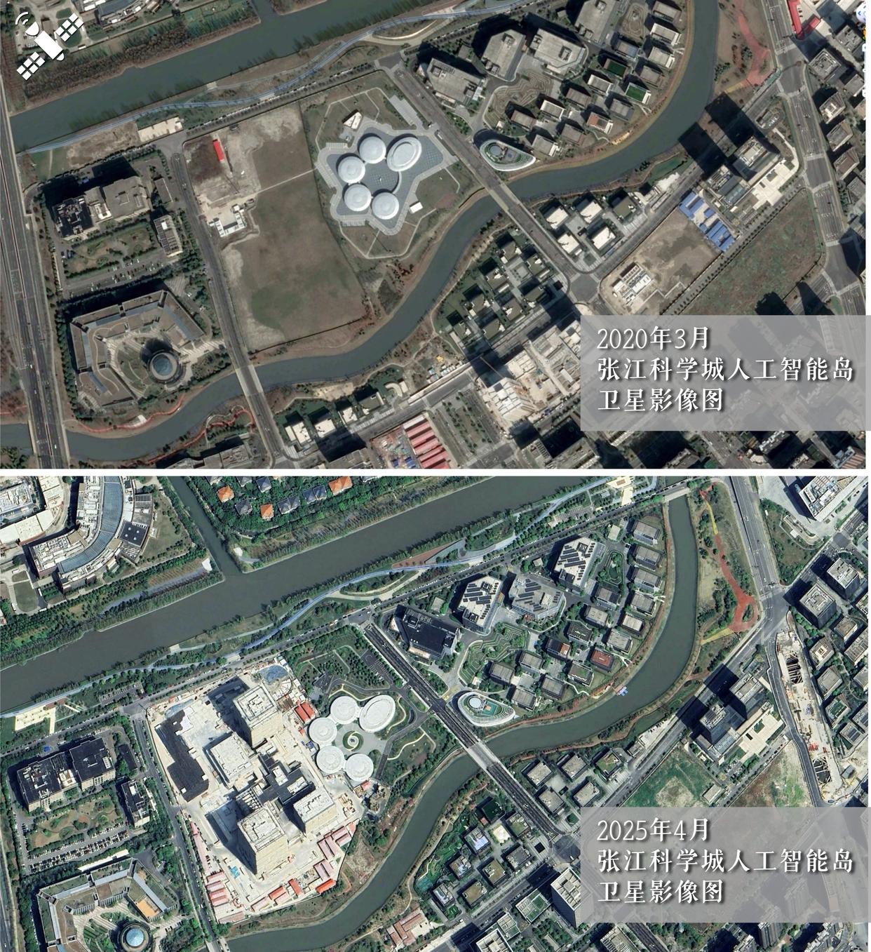 解读:2025年与2020年相比,上海张江科学城内的人工智能岛周围的产业生态圈建设更加完善。
