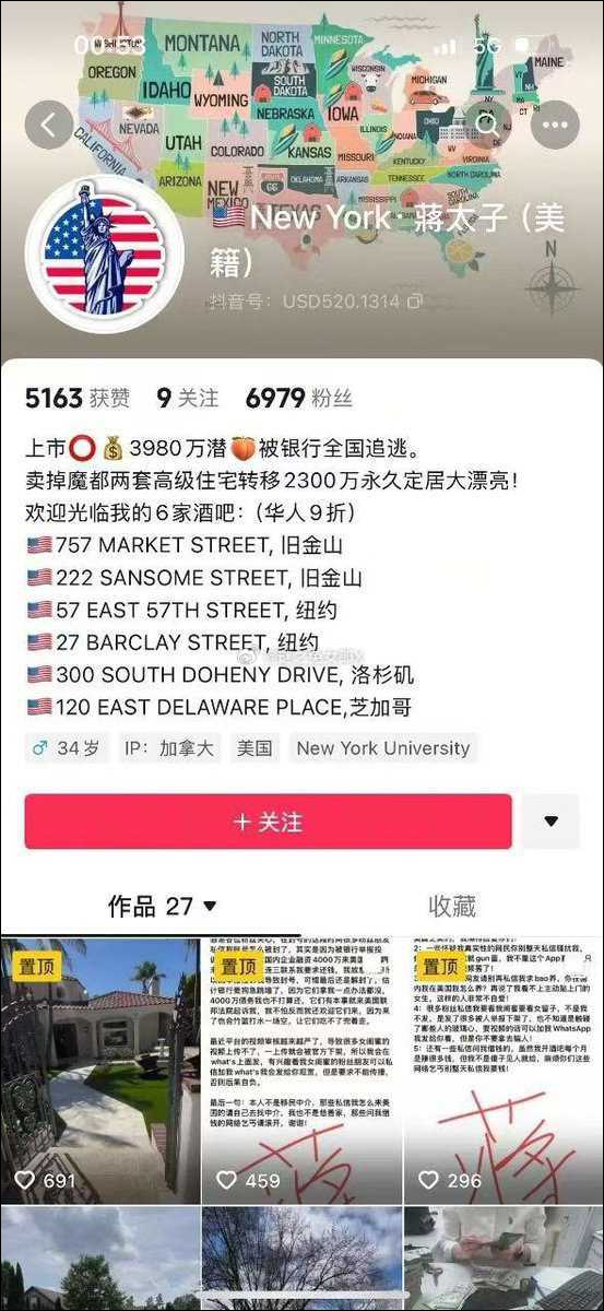 近日,有网友反映博主“New York蒋太子”在抖音炫耀自己如何戏耍国内银行卷钱跑路。