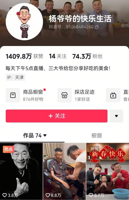 目前,“杨爷爷的快乐生活”账号中许多带货的视频被删除,目前剩下的视频中,内容多为儿子照顾父亲、父子合拍搞笑段视频等。