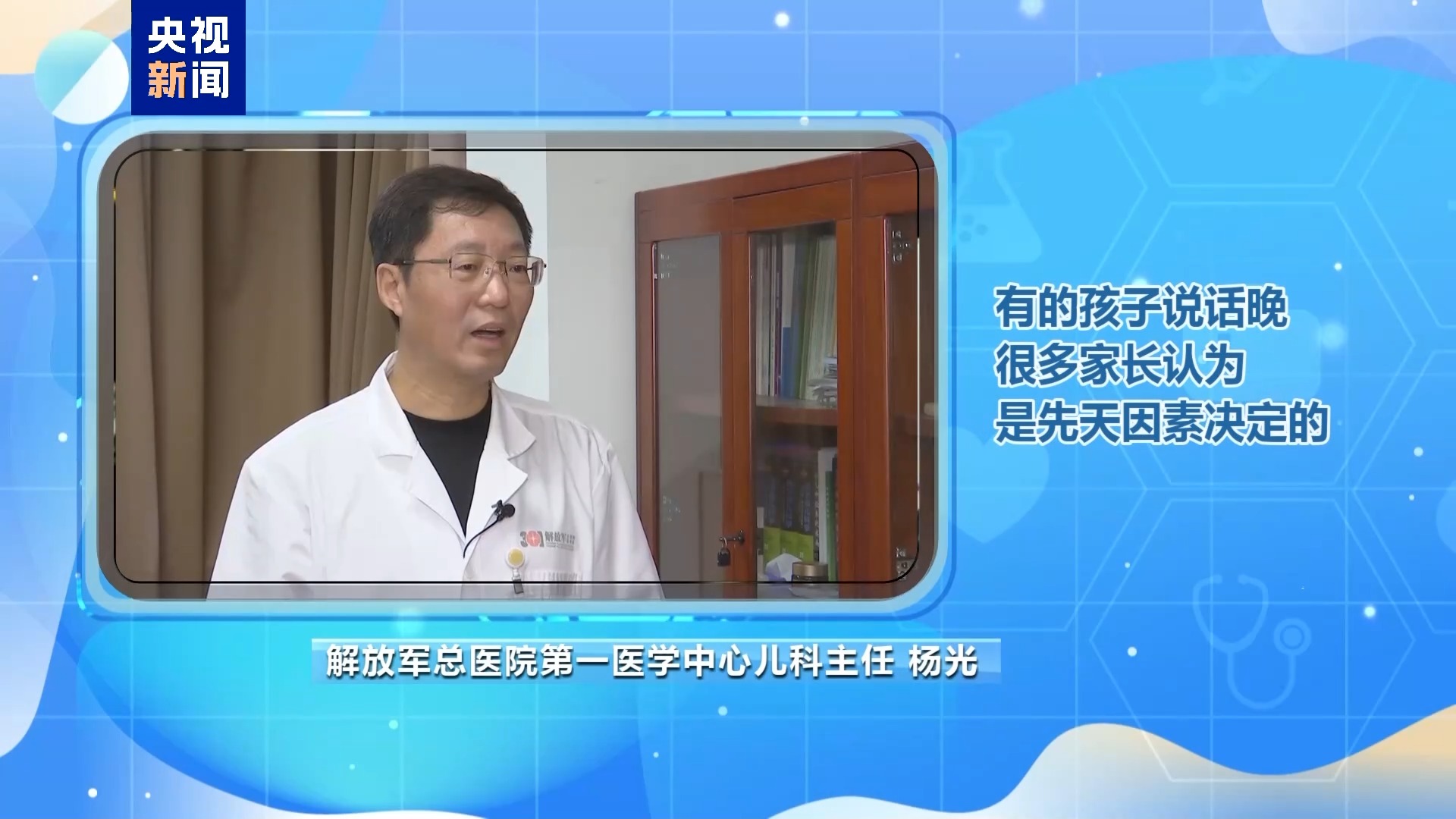 解放军总医院第一医学中心儿科主任 杨光:比如有些孩子说话晚,很多家长小时候说话也晚,觉得这都是先天因素决定的。实际上如果发现一个孩子,到两岁、两岁半还不能说话,有可能是单纯的语言发育迟缓,也有一些是孤独症的表现,这些都得专科医生来判断。早期干预可以提高预后效果。