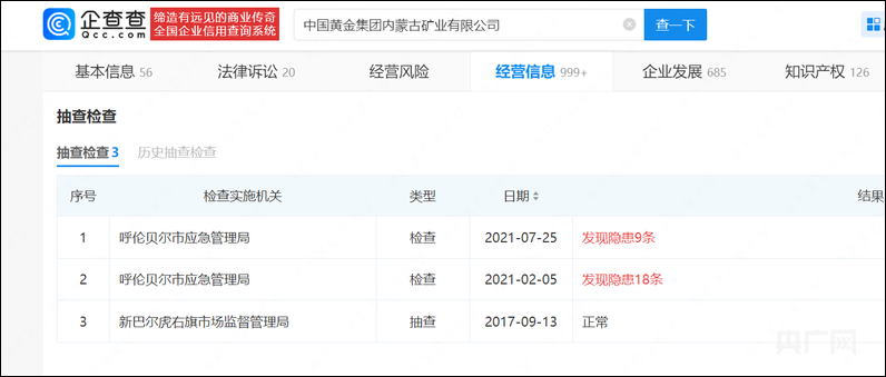 中金内蒙古矿业隐患信息(央广网发 图源企查查)
