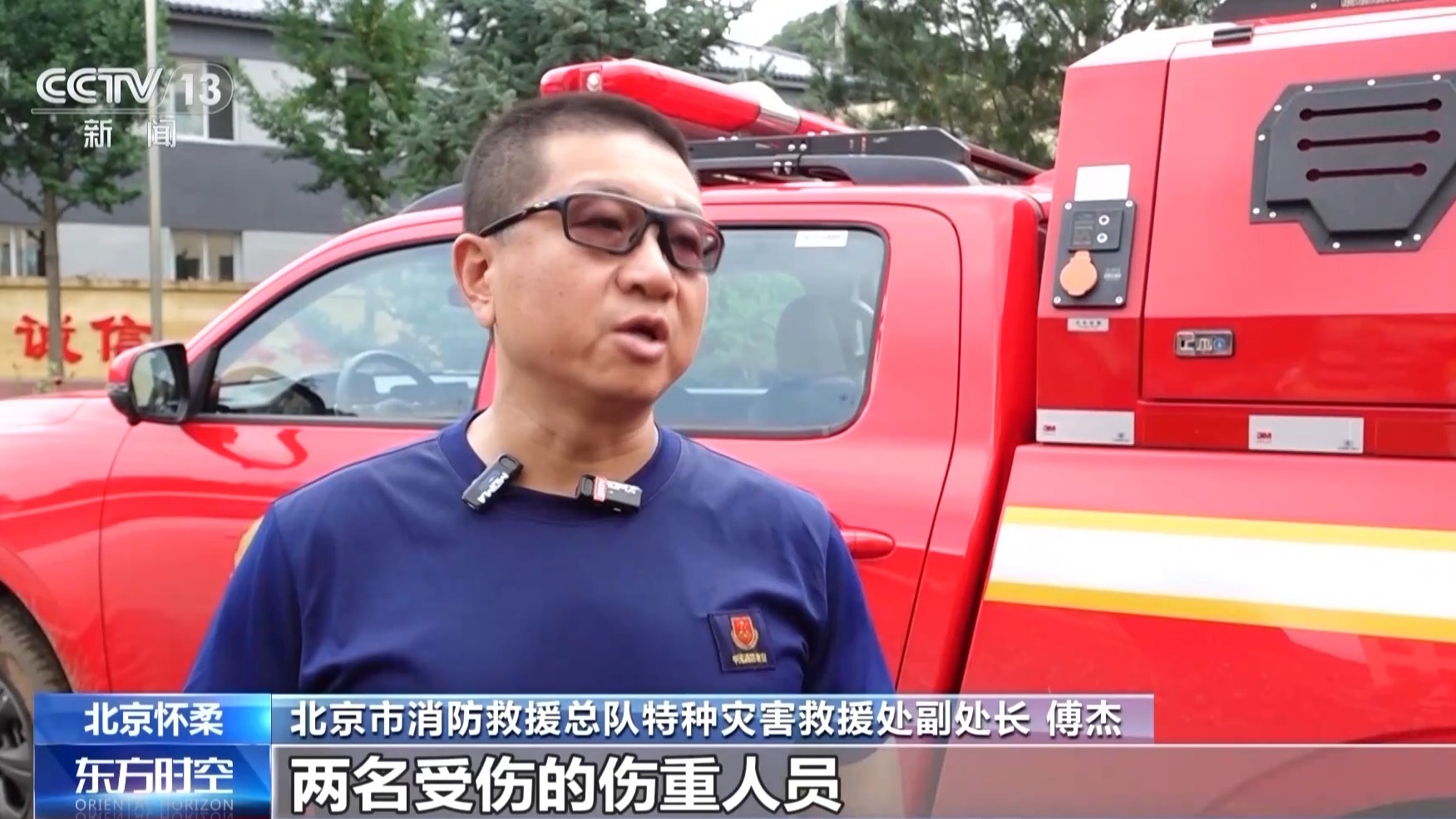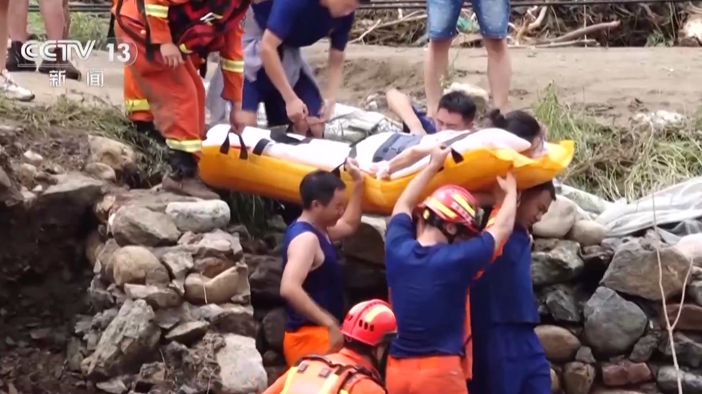 北京市消防救援总队特种灾害救援处副处长 傅杰:成功从碾子湾村疏散出来两名受伤的伤重人员,一名可能是游客受到外伤,还有一名可能是当地居民有腰伤,必须进行水平转运。