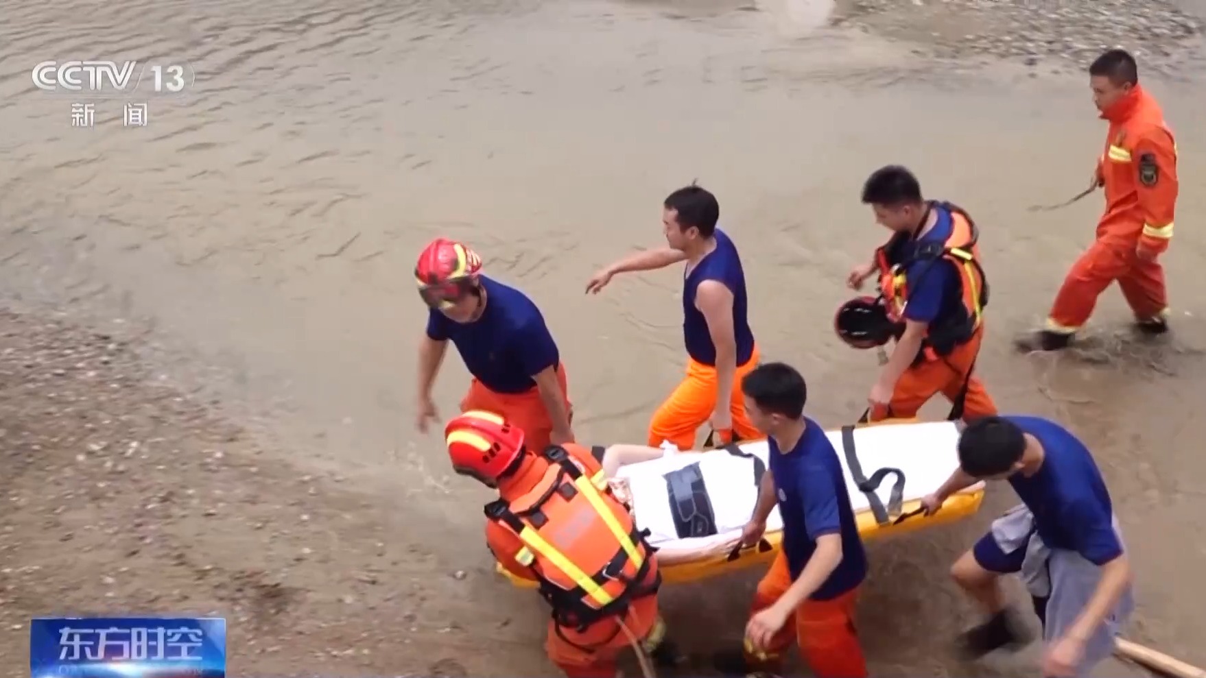 怀柔区消防救援支队杨宋消防站副站长 李陈才:刚来的时候,整个道路都中断了,28日6点半左右,过来之后我们看了下水文条件,可以横渡搭绳索。