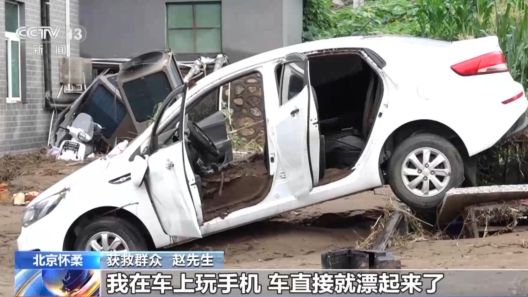 获救群众 赵先生:大概是26日晚上十一二点的时候,我在车上玩手机,车直接就漂起来了,我的车门已经打不开了,我从车上跳出来,车就被冲跑了。