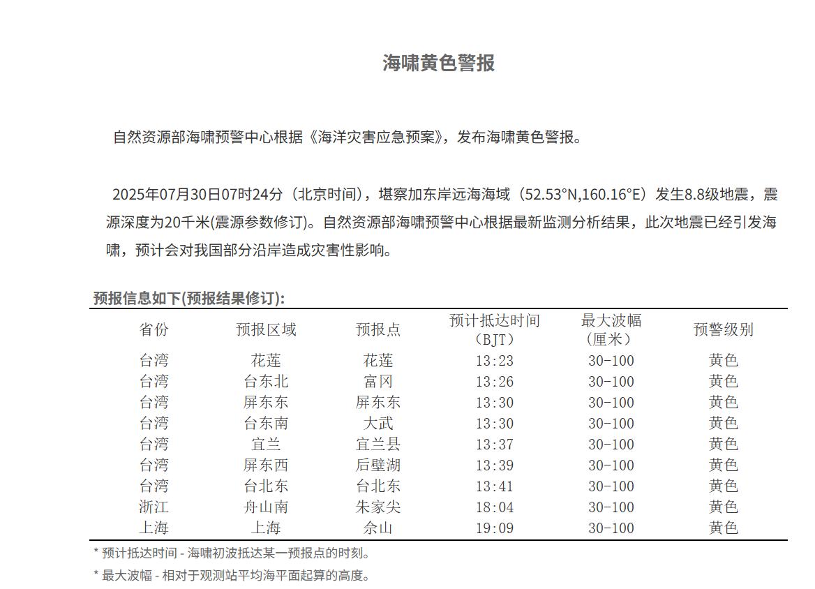 海啸黄色警报