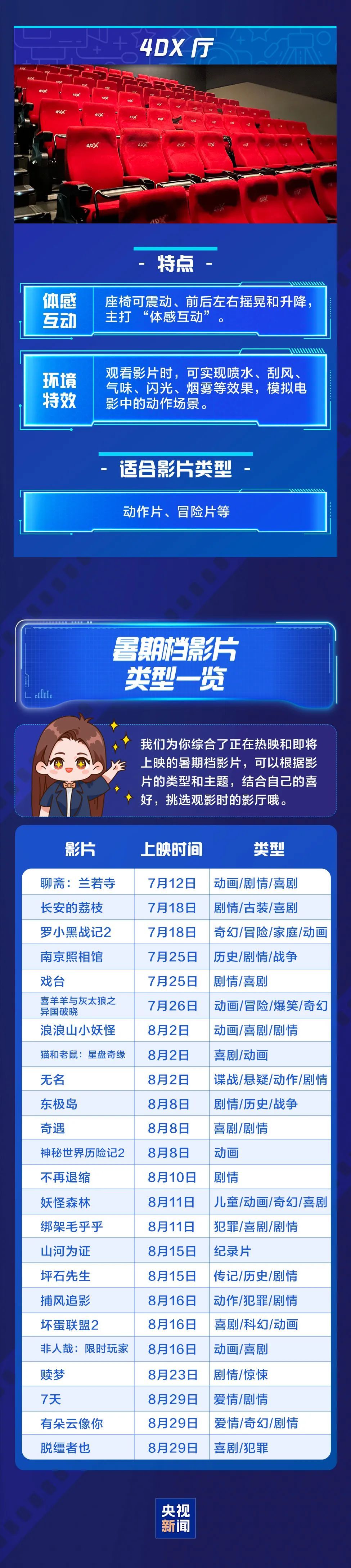 截至8月10日,2025年暑期档票房已经突破85亿元。今年的暑期档,历史、悬疑、动画、科幻、动作等十余种类型的影片,为不同喜好的观众提供了丰富选择。影片呈现多元化的同时,五花八门的特色影厅也在硬件方面为观众优化着观影体验。