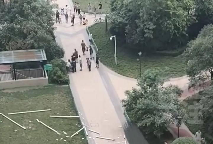 橙柿互动综合 8月10日,西安华洲城天峰小区一段落水管从建筑脱落,砸中了一辆婴儿车,受伤婴儿还在医院治疗。视频显示,多截断裂水管散落绿地,婴儿车位于坠落点旁。小区物业事发后到场维持秩序,多位业主在现场围观。