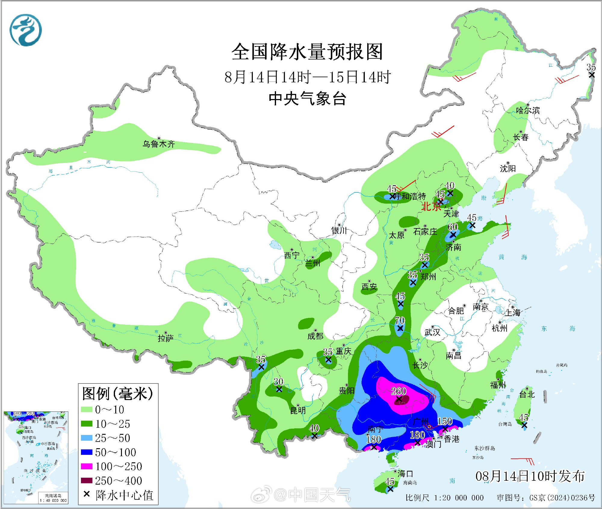 预计,今天14时至明天14时,广东大部有大到暴雨,北部和沿海部分地区有大暴雨。