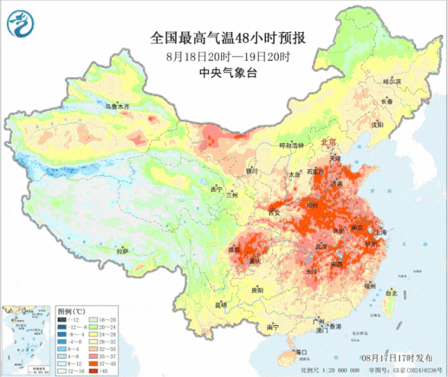 四川盆地和浙江部分地区最高气温可达40℃以上,重庆未来三天的最高气温也将维持在39℃左右。