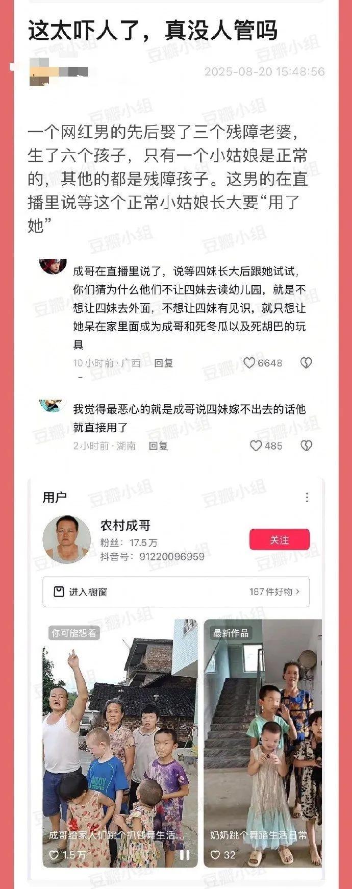 1、 账号“农村成哥” 此前已发布视频,称网传 “近亲生子” 为不实信息;