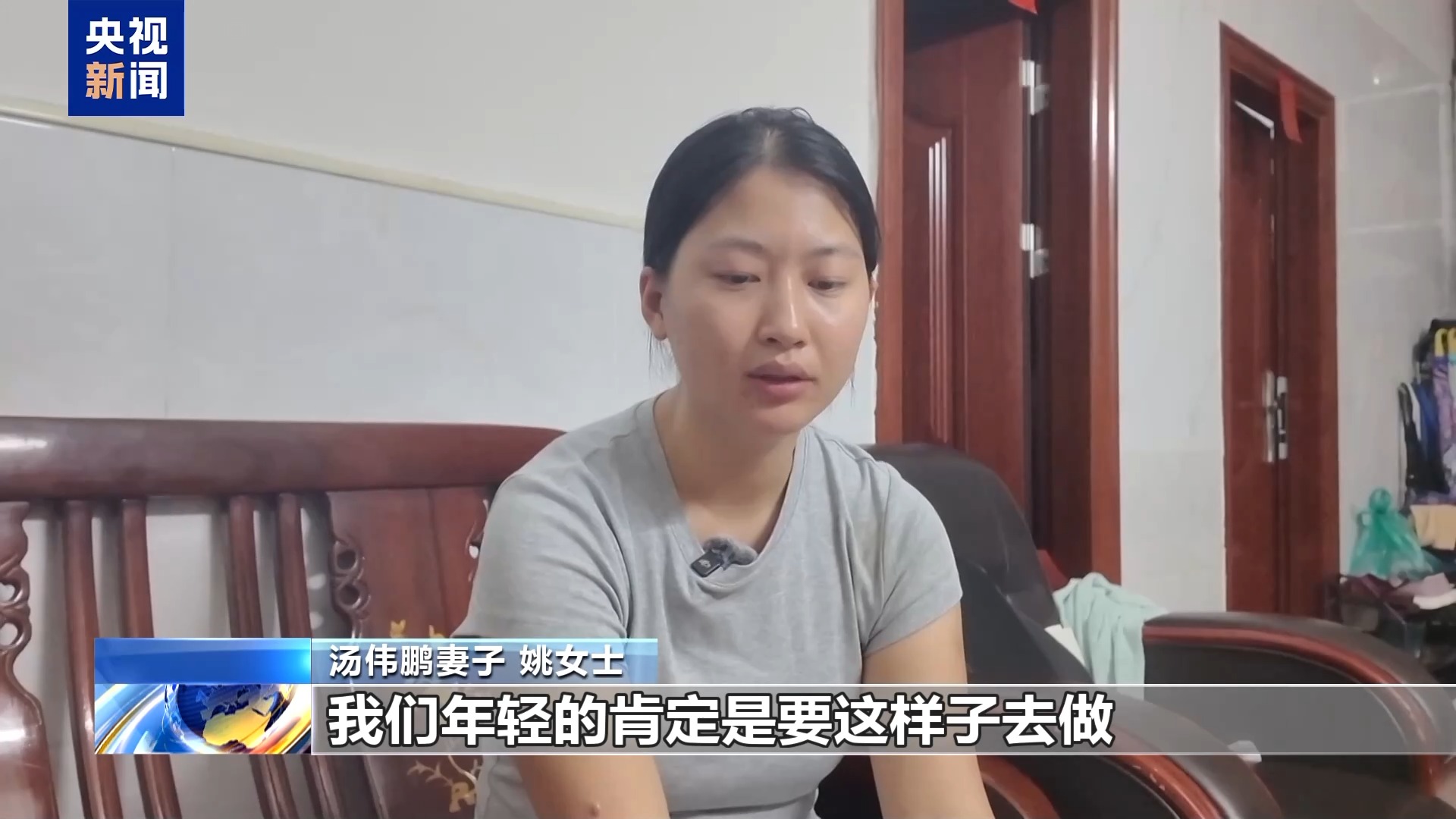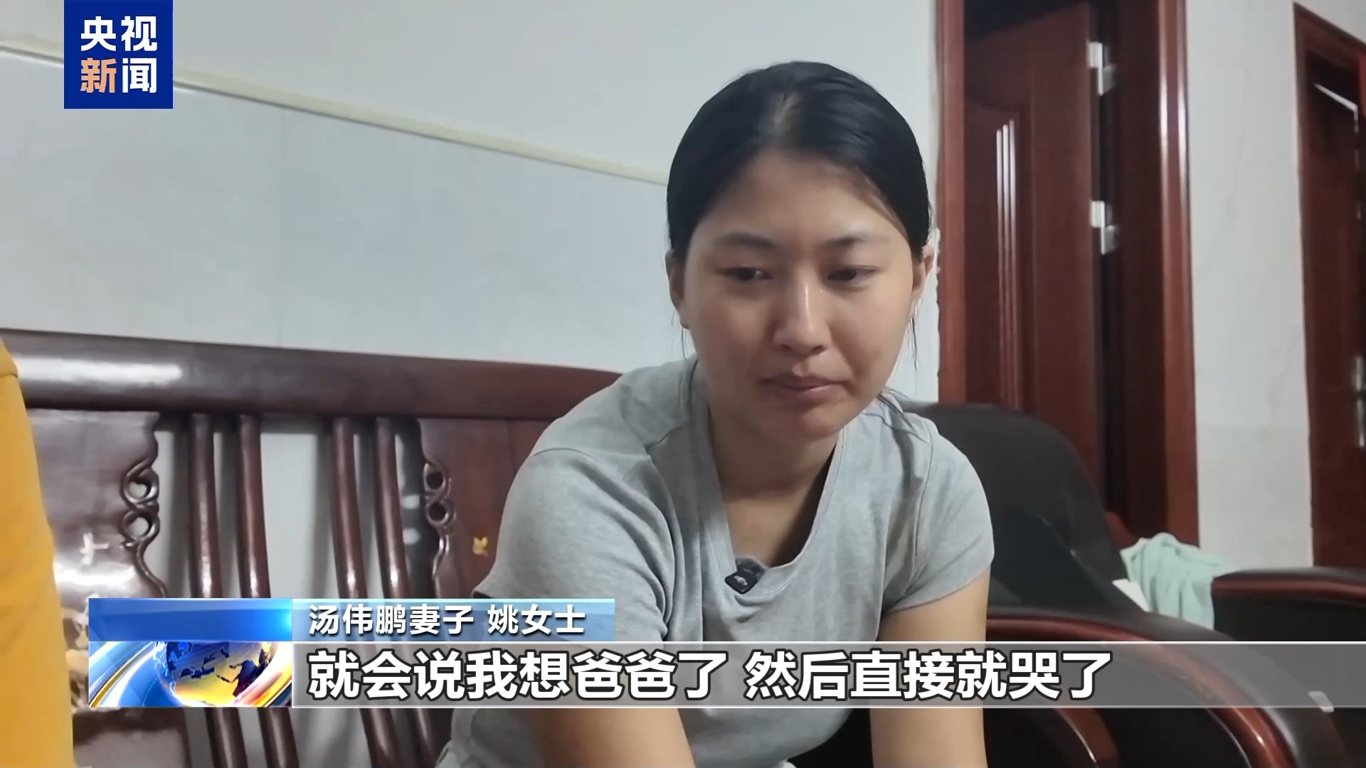 汤伟鹏妻子 姚女士:每到睡觉的时候,大女儿就会说想爸爸了,然后就哭了。小的就会安慰她,就像她爸爸安慰她的时候,要拍拍她肩膀,说:姐姐,爸爸会回来的,他会回来永远陪着我们的,你别哭啦。