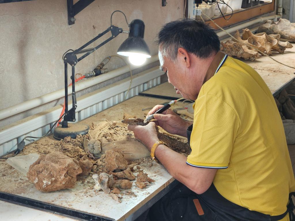 “出土的化石被大量泥土包裹,需要仔细清理和修复。”中国科学院古脊椎动物与古人类研究所骆驼山研究项目组技师刘虎介绍说,小心翼翼地清理后,他们还要对化石脆弱的部分进行加固和修复。