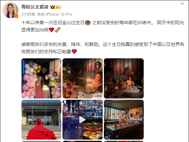 今天,谷爱凌晒22岁生日庆生照,她提到之前没受伤时每年都在训练中度过。