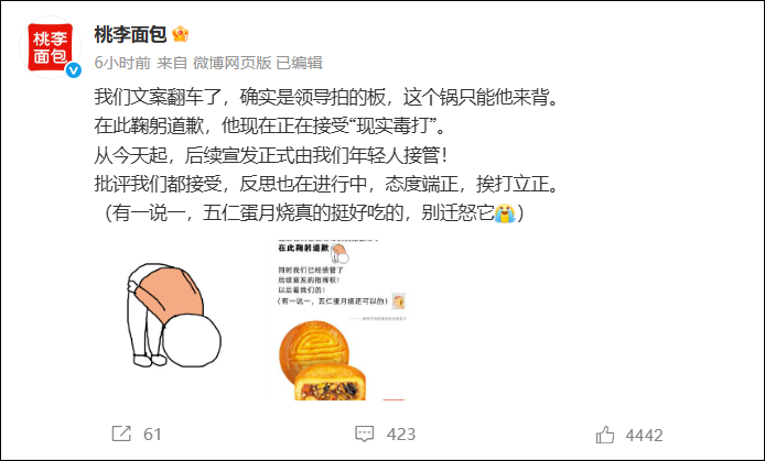 桃李面包致歉:“我们文案翻车了,确实是领导拍的板……”
