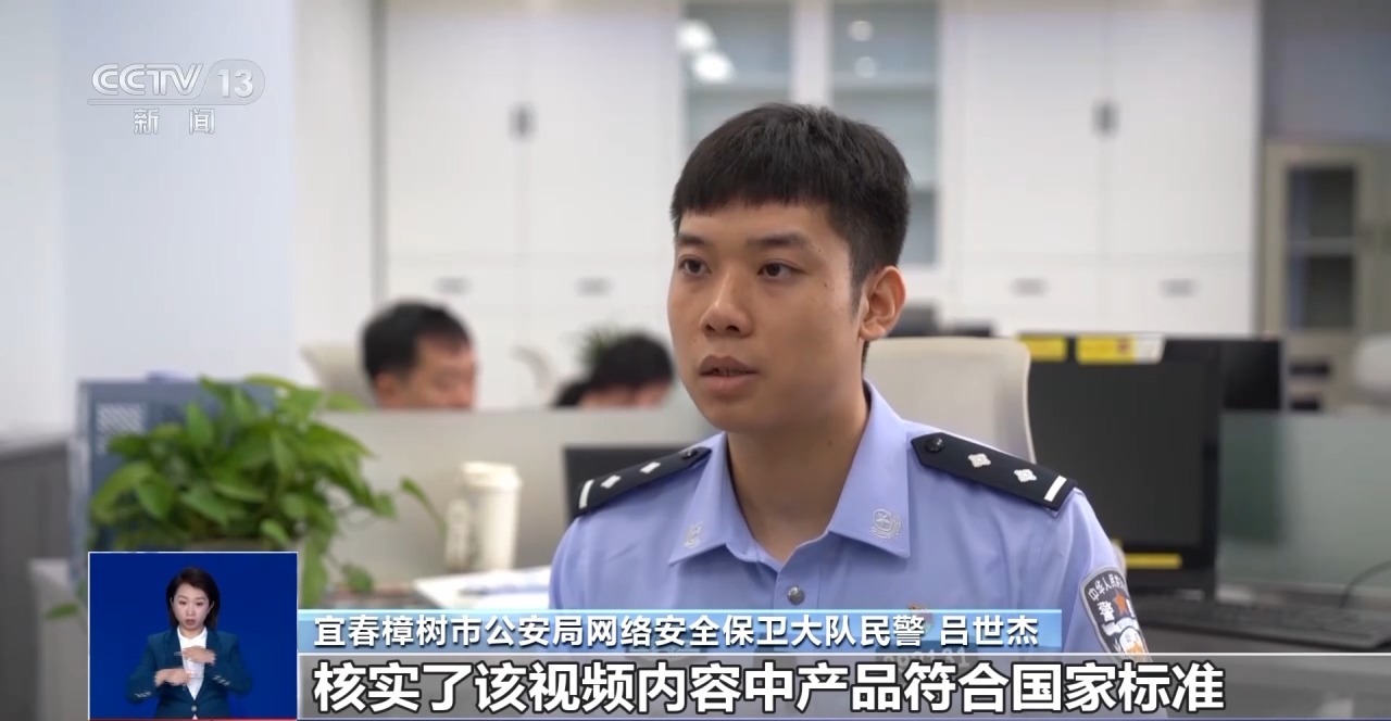 宜春樟树市公安局网络安全保卫大队民警 吕世杰:我们经过调查取证,核实了该视频内容中的产品符合国家标准,该视频存在故意夸大引导的行为。