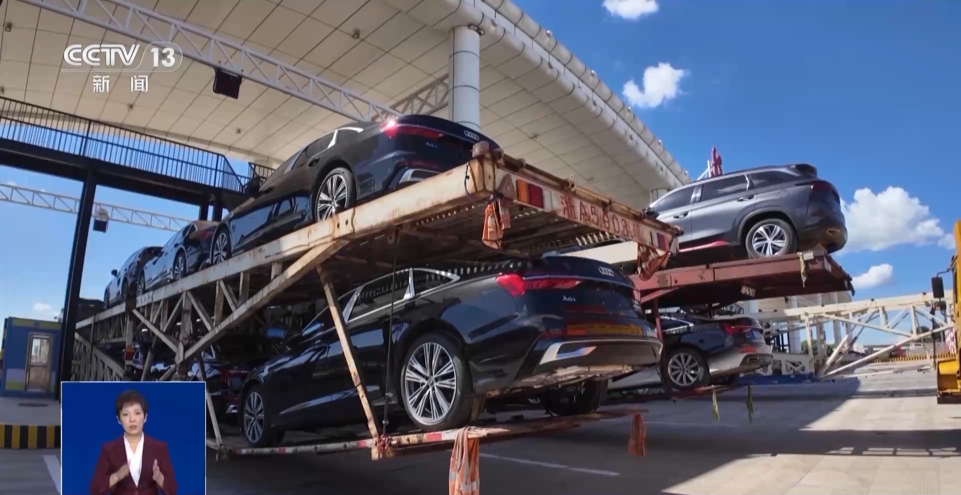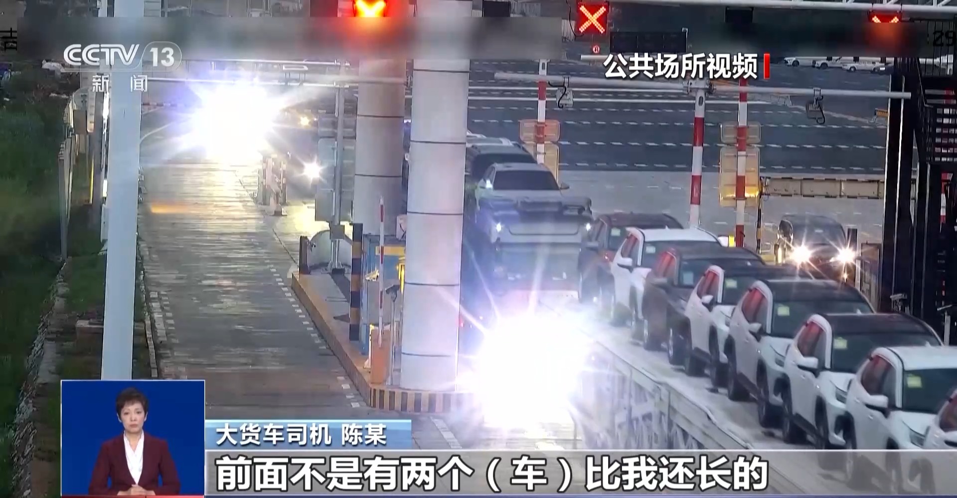 大货车司机 陈某:之前都是往高速服务区“倒板”。比如拉7台车上高速,不管车长30米还是40米,挂车都是不合规的,但是高速口都让上,只要拉7台就可以上,进到服务区里。然后用合规的车再拉7台,卸到服务区我再装上。之前服务区没人管控,现在服务区装不了了。