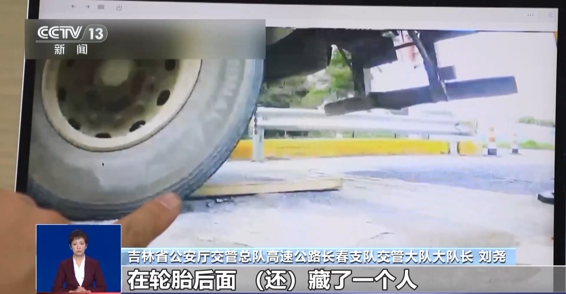 吉林省公安厅交管总队高速公路长春支队交管大队大队长 刘尧:我们把这种现象称为“蜘蛛侠”。车底藏一个人,他用手把木棒垫到固定位置,让车辆轮胎轧木棒上。当车辆全部通过磅秤后,在轮胎后面还藏了一个人,这个人把木棒拾起,完成整个违法行为。这样就能够超过它的核定载重重量5吨到10吨驶入高速。