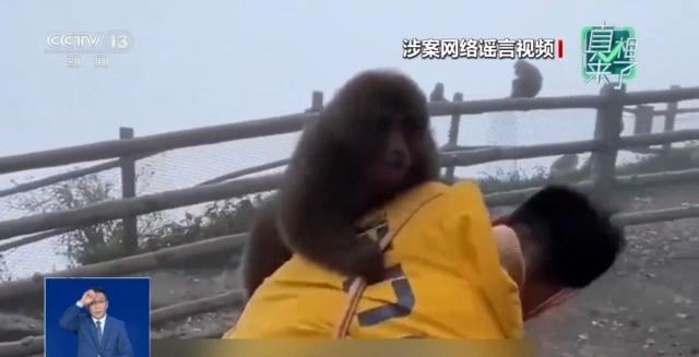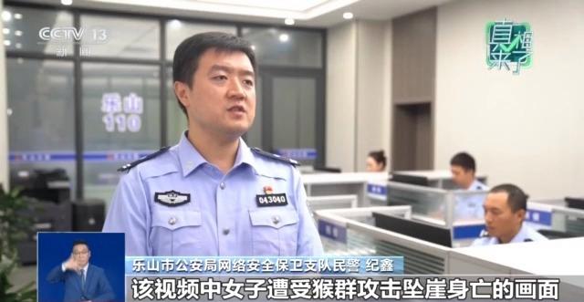乐山市公安局网络安全保卫支队民警 纪鑫:该视频中女子遭受猴群攻击坠崖身亡的画面并非实景拍摄,而采用的是技术合成画面并配音的方式呈现。同时,画面也并非峨眉山景区的画面。后续通过查证,峨眉山景区从未发生过类似事件,属于不实信息。