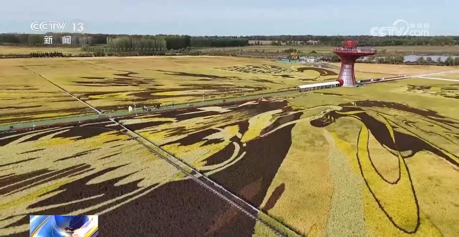 进入秋季,哈尔滨多地联动,以“文旅+农业”为游客打造特色田园之旅。在北大荒集团闫家岗农场,140多亩的稻田宛如金色画布,6幅巨型稻田画徐徐展开,游客可以登上观光塔俯瞰稻田画全貌,也可以乘坐稻田小火车穿梭在稻浪间,近距离感受这份秋日浪漫与丰收喜悦。
