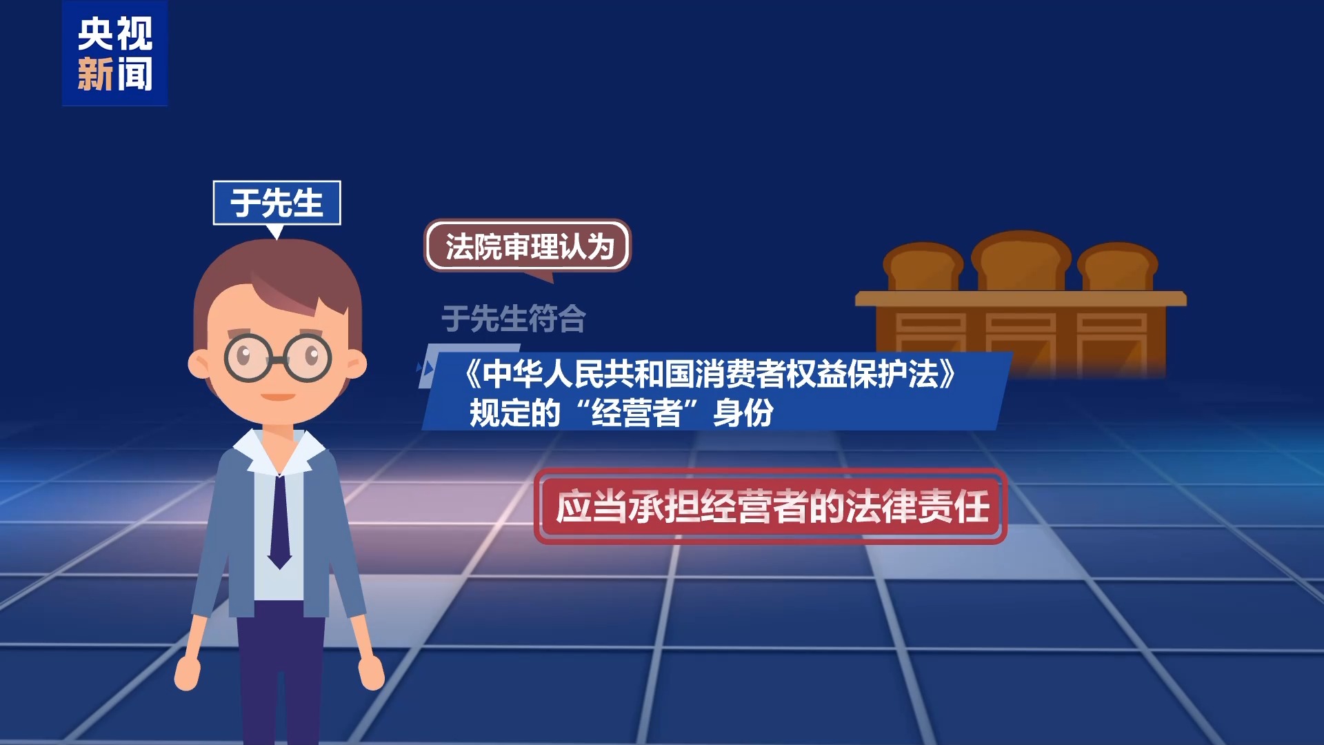 也就是说,于先生符合《中华人民共和国消费者权益保护法》规定的“经营者”身份,应当承担经营者的法律责任。