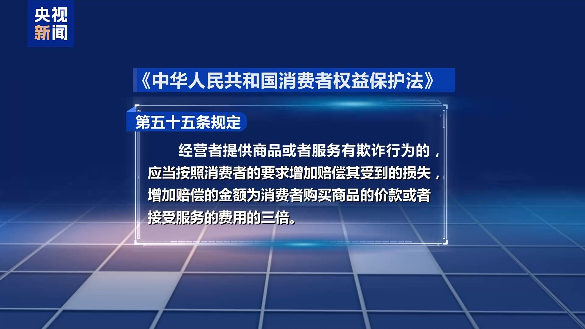 第五十五条规定,经营者提供商品或者服务有欺诈行为的,应当按照消费者的要求增加赔偿其受到的损失,增加赔偿的金额为消费者购买商品的价款或者接受服务费用的三倍。这也就是我们常说的三倍赔偿。