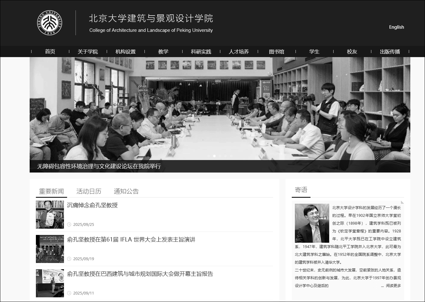北京大学建筑与景观设计学院官网已变黑白。