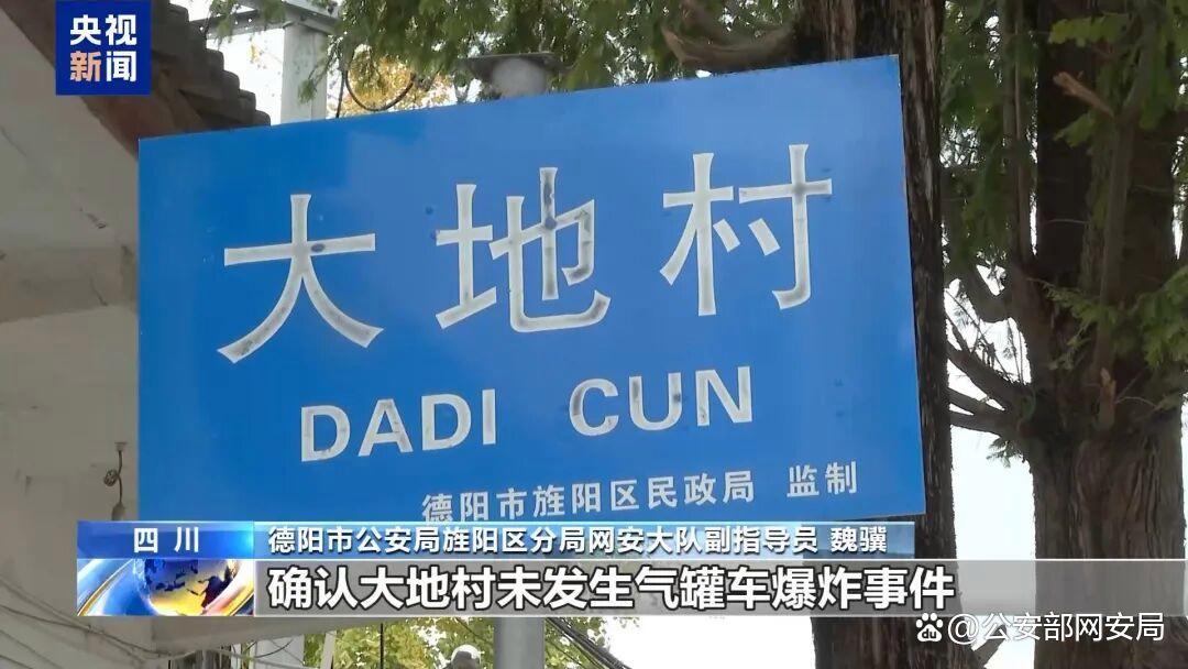 德阳市公安局旌阳区分局网安大队副指导员 魏骥:我们通过实地走访大地村当地群众,并向辖区交通、应急、消防等相关部门核实,确认大地村未发生气罐车爆炸事件。