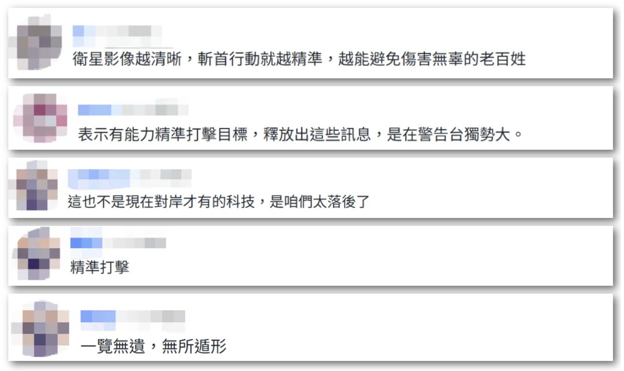 “一览无余,无所遁形!”不少岛内网友涌入相关报道评论区留言表示,此次发布的卫星图片已显示出大陆“有能力精准打击目标,释放出这些信息,是在警告‘台独’势力。”