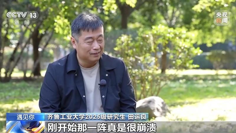 齐鲁工业大学2025级研究生 田运良:查成绩那一段时间就是很消沉。我说我可能真不行,我不想再考了。然后我孩子说,爸爸你要放弃了吗。这一句话就把我激起来,不能放弃。一开始你定的目标是陪着孩子学习,忽然一下子你就临阵脱逃了,是那种感觉。