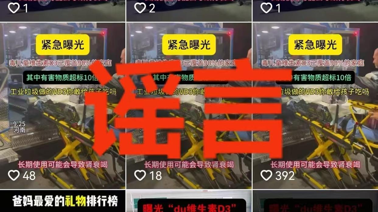 打开某短视频平台,一则视频瞬间抓人眼球。紧张的背景音乐全程烘托,“紧急曝光”的大字标题格外扎眼。“毒儿童维生素D3覆盖90%家庭,有害物质超标10倍,长期吃致肾衰竭”“工业垃圾做的,你敢给孩子吃吗?”画面里,这些文字接连出现,救护车急救的场景让人揪心。