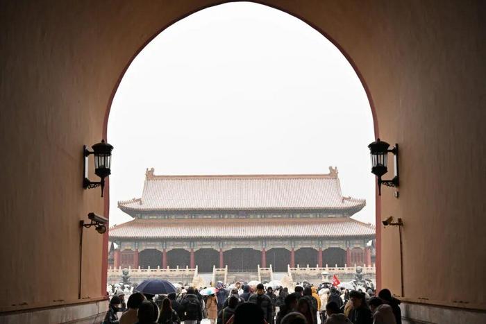 (原标题:初雪的故宫“一步三格格”)