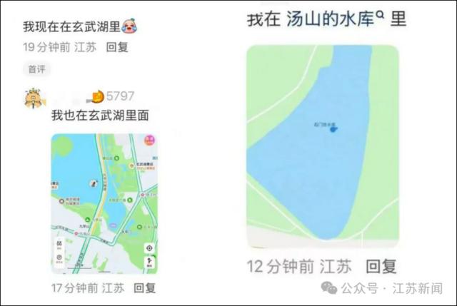 不少网友反映自己的定位出现在玄武湖里。