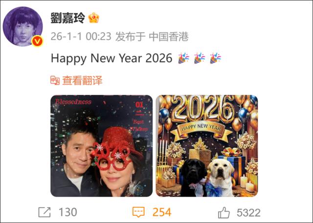 1月1日,刘嘉玲晒出与梁朝伟一同跨年庆祝元旦的合照,温馨甜蜜。