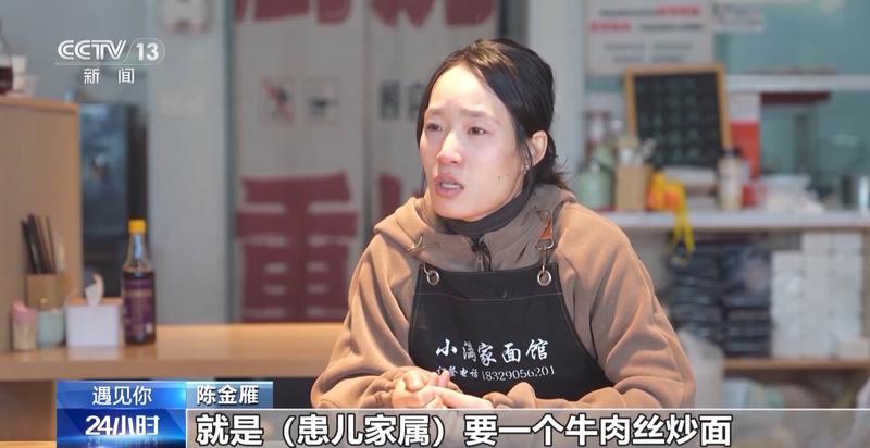 小满家面馆店主 陈金雁:后面我们才知道,小孩子生病时间比较长,大概需要两年的时间。大的小孩还好一点,一个大人在身边就可以了,但小的小孩,估计需要两个大人在旁边。我们其他大忙也帮不上,只能帮他们送个餐,按他们的需求去做餐,我觉得这就是帮他们最大的忙了。