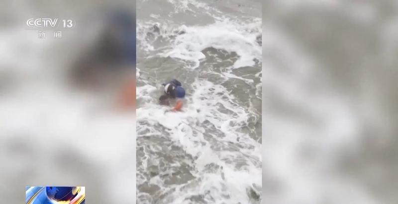 救人之后,王玉平自己却再次被海浪冲进水中,瞬间便被冲出去十几米远,他的身影在海水中起起伏伏,海浪一次又一次地没过他的头顶。救生圈根本无法被扔到王玉平的身边,他只能靠自己往回游,所有人都揪紧了心,不断冲着王玉平大喊,为他加油鼓劲。